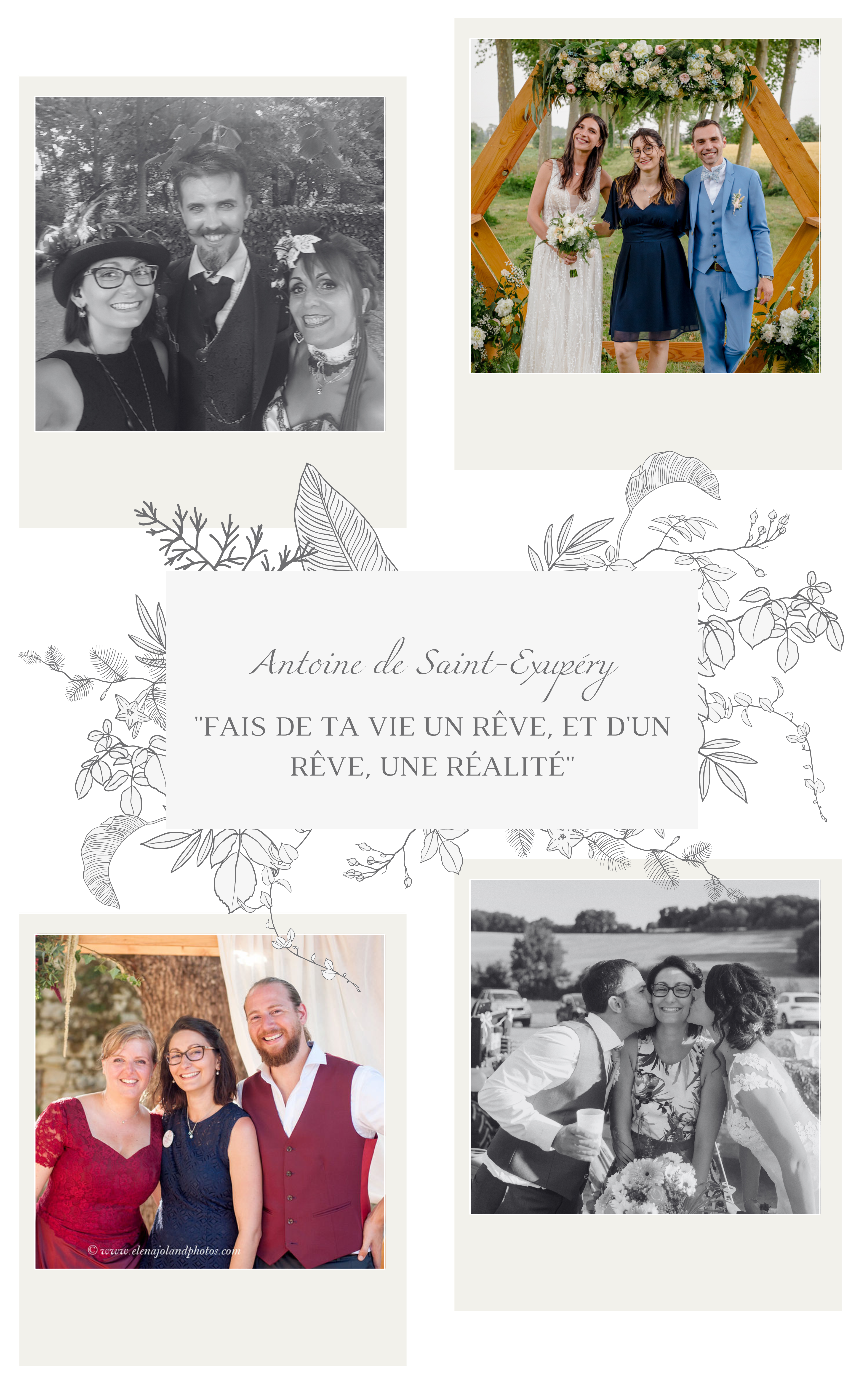J’adore prendre le temps d’écouter mes couples, de comprendre leurs souhaits et leurs attentes, afin de créer leur mariage idéal, en laissant de côté les codes traditionnels qui peuvent parfois être restrictifs.